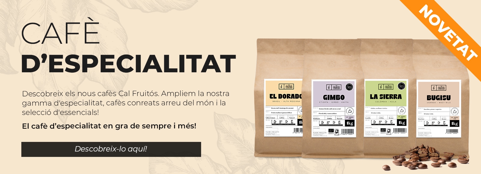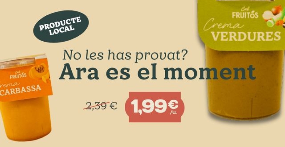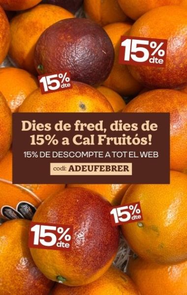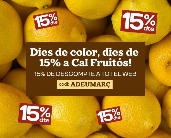 És veritat que a Cal Fuitós som especialistes en fruita i verdura al millor preu, però no és l'únic que trobaràs. A part de la nostra secció de fruiteria online també podràs comprar tot tipus d’aliments com a làctics, cereals, conserves, fruits secs, begudes, ous… A més si vols comprar online encara més econòmic no dubtis en mirar-te la nostra secció de promocions, et sorprendrà!