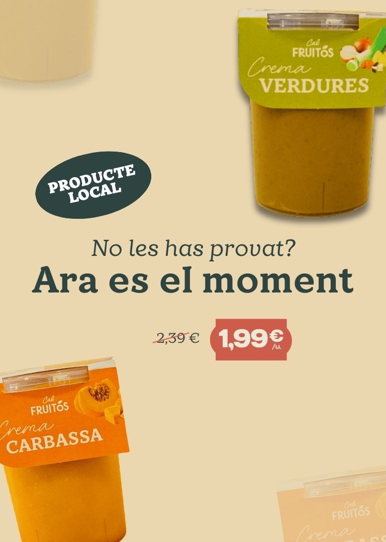 A Cal Fruitós podràs comprar tot el que necessites per seguir una alimentació variada, sana i al millor preu. Oferim una fruiteria online amb els millors productes frescos i de temporada. Apostem per productes de proximitat, més respectuosos amb l'entorn. També és important per nosaltres ser un supermercat online sostenible i ecofriendly. Per això treballem cada dia per poder eliminar a la seva totalitat el plàstic de totes les nostres botigues, substituint les bosses i altres envasos convencionals per biocompostables, de paper o ràfia.
